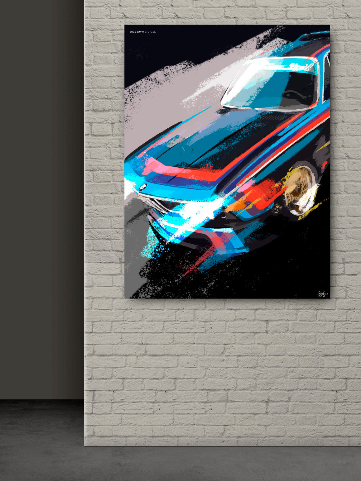 Automotive artwork printed on canvas or photo paper.